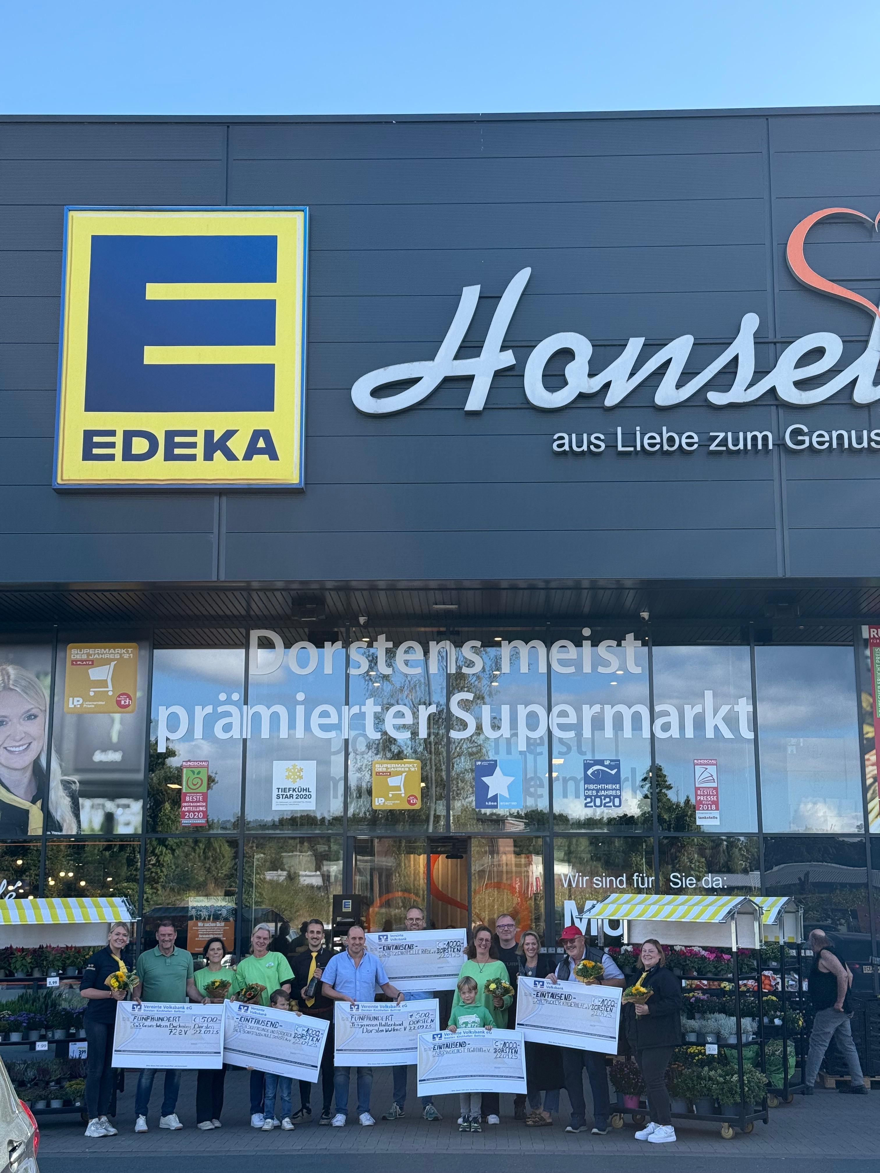 Der 1. Vorsitzende des Vereins, Norbert Holz und sein Stellvertreter Hubert Wilmen übergaben die symbolischen Spendenschecks an die Kindergartenleiterinnen (Große-Jüttermann, St. Josef, Ansperger, Arche und Blume, Pestalozzi).